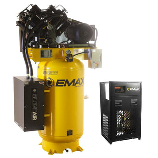 Emax Compressor Silent Industrial Plus 10 HP 1-Phase 80 gal. Vertical Compressor with 58 CFM Dryer Bundle-With Pressure Lube Pump