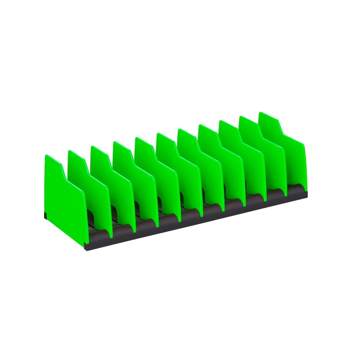 Maximize your storage by organizing pliers upright in toolbox drawers! The premium rubber base on this rack grips tools and the drawer to keep it all in place. Accommodates a wide variety of tools holding a total of 10. Immediate recognition of missing tools. How many can you fit in your drawer? Measures 10.7 x 3.75 x 3 inches. Patents US D816,378S, US10,500,712. Made in USA.