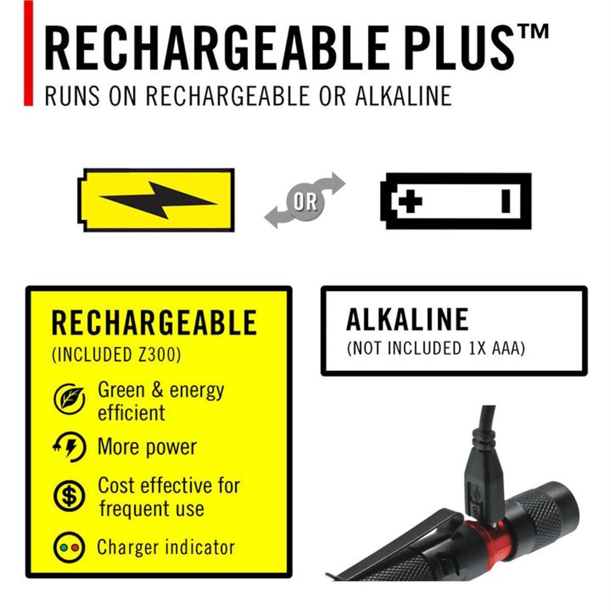 - Battery Type: Z300 ZITHION-X™ Rechargeable Battery Or 1 X AAA