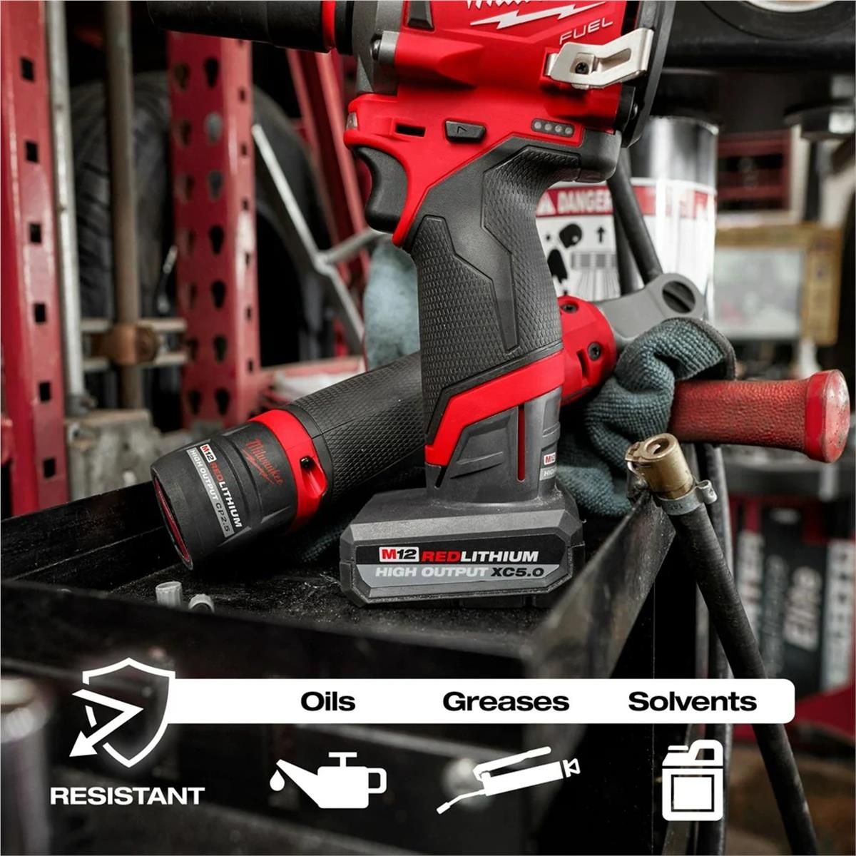 M12 REDLITHIUM™ HIGH OUTPUT™ XC5.0 delivers 25% more power and runs 25% cooler vs our other M12 REDLITHIUM™ XC battery packs. The increase in power elevates the performance of the entire M12™ system and drives the next breakthrough in M12 FUEL™. The lithium-ion battery delivers fade-free power and runs substantially cooler through demanding applications, allowing you to push your cordless power tools throughout a wide range of applications. Each battery pack is durably built for heavy-duty use, runs cooler and performs in climates below 0°F/-18°C. In addition, the M12 REDLITHIUM™ HIGH OUTPUT™ XC5.0 is built with a resistant housing, providing increased protection against exposure to common oils, greases, and solvents found in transportation maintenance and manufacturing environments. The M12 REDLITHIUM™ HIGH OUTPUT™ XC5.0 is fully compatible with 125+ M12™ solutions.