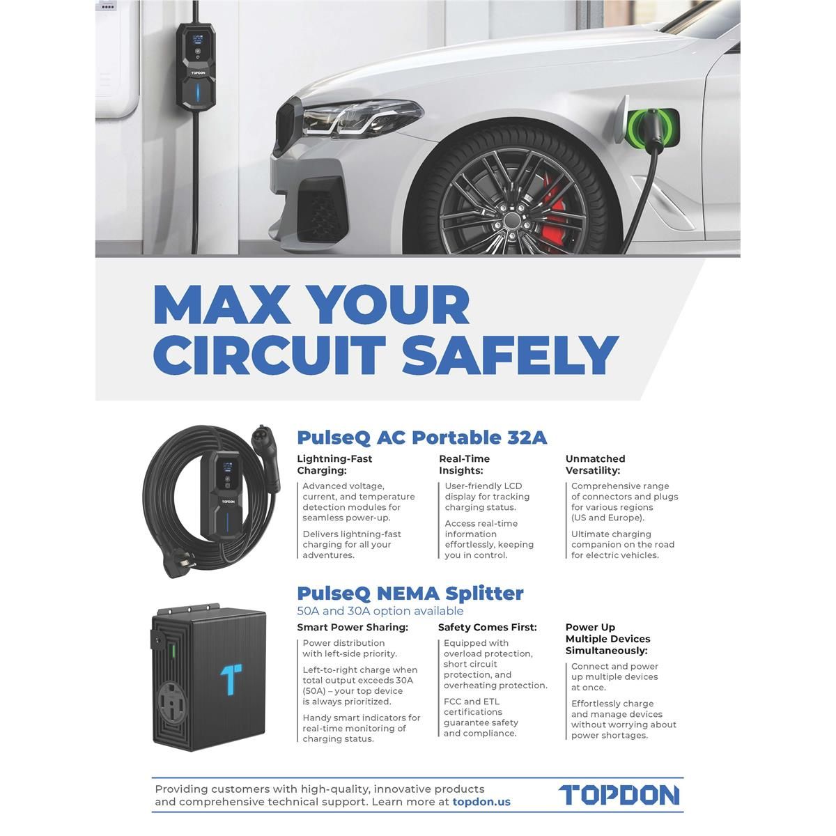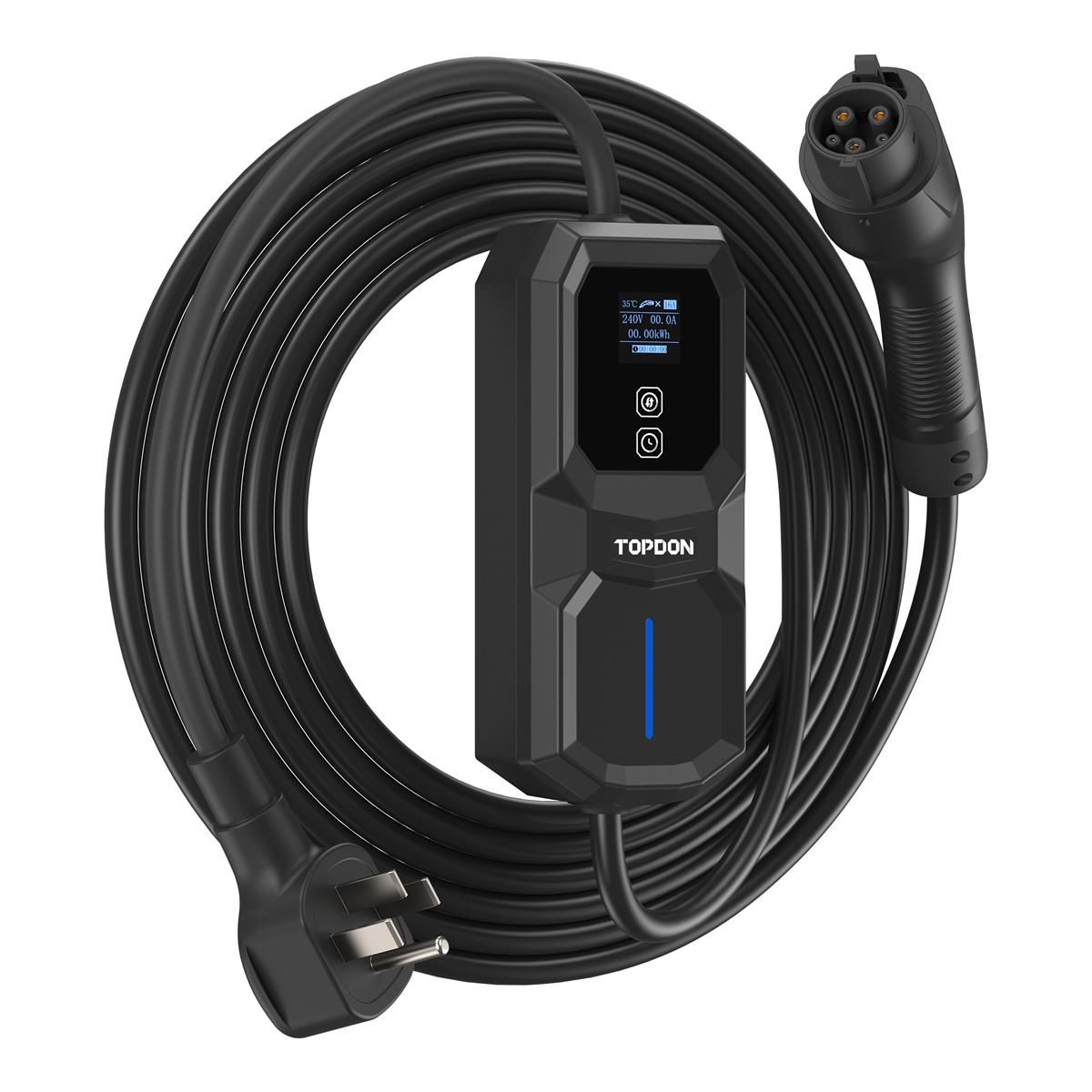 Topdon PulseQ AC Portable 32A Level 2 Portable EV Charger 32A, NEMA14-50P w/5-15P Adaptor