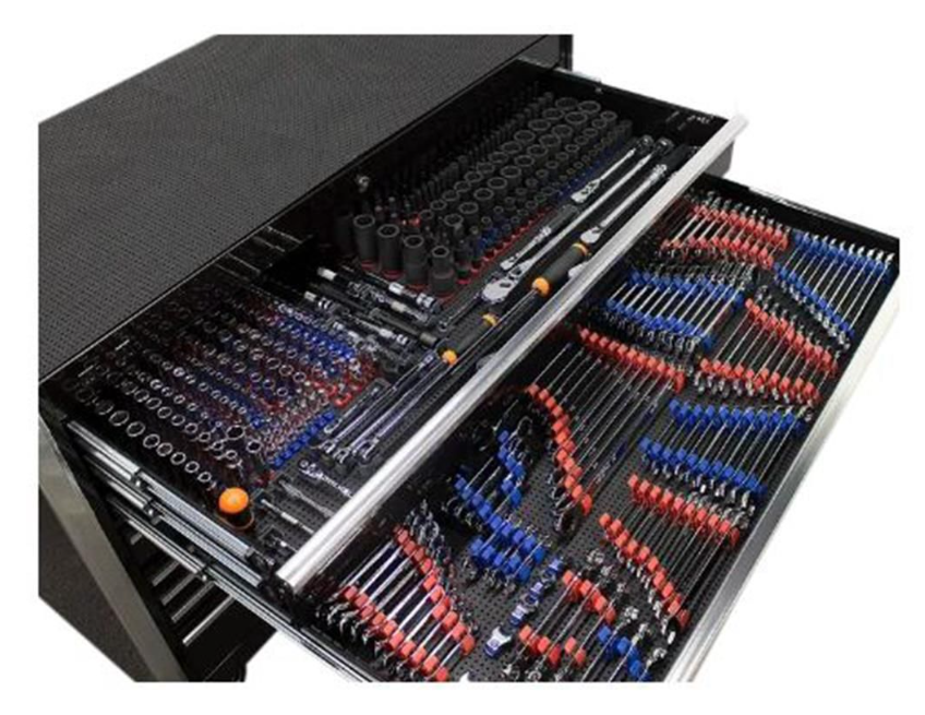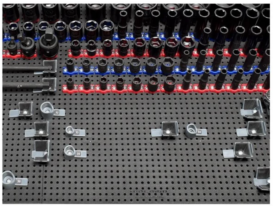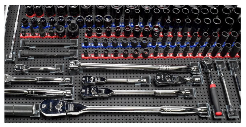 - Drive Ratchet Head Holder with locating pins on the bottom of each holder, that fits into the Toolgrid Board holes for a quick and easy set-up.